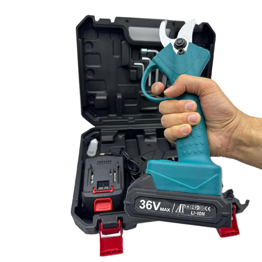 Foarfeca electrica pe acumulator pentru gradina AT PERFORMANCE®, 36 V, putere maxim 800 W, valiza de transport, taiere maxim 25 mm, contine: 2 acumulatori 2.0 Ah + incarcator + valiza transport.